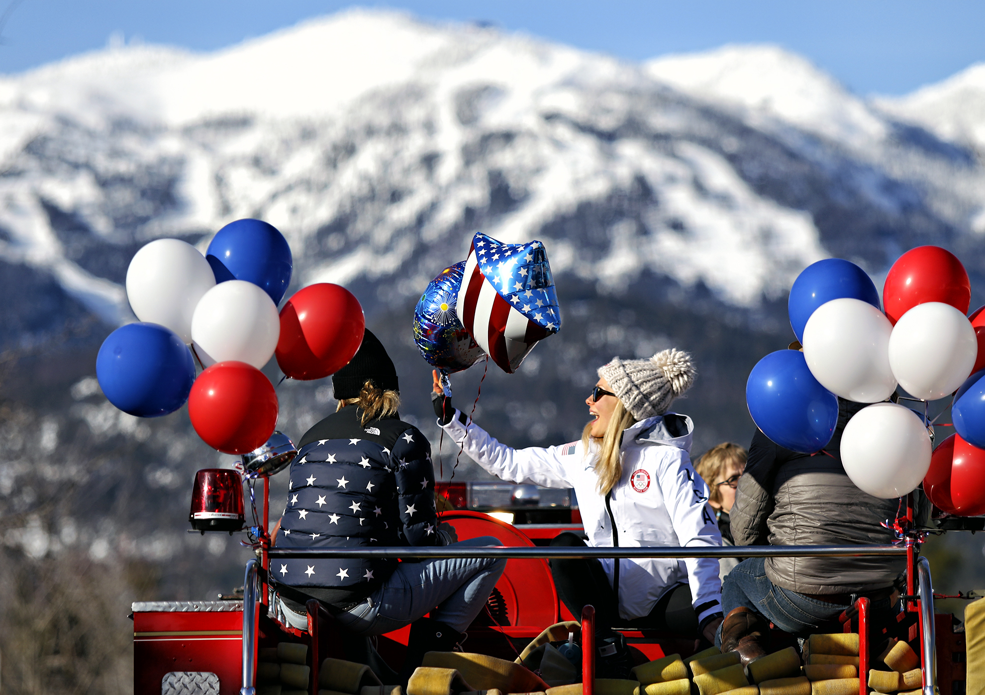 Maggie Voisin was welcomed home to Whitefish on March 7, 2018 with a firetruck ride through downtown after competing at the Winter Olympics. Justin Franz | Flathead Beacon