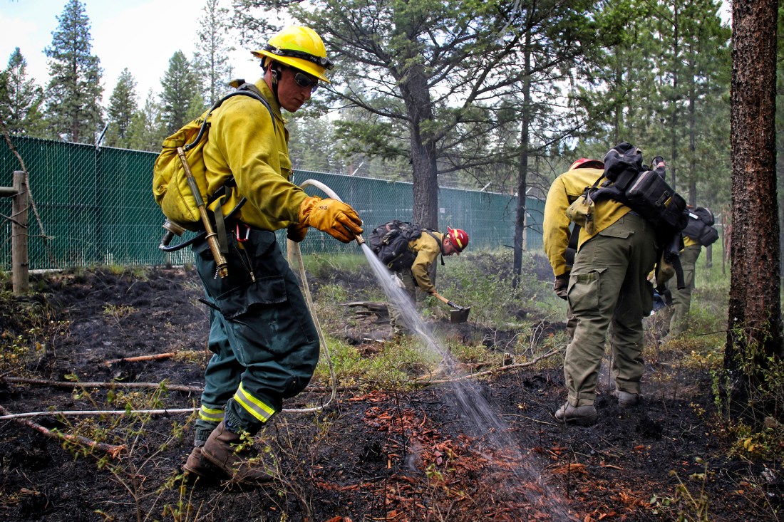 Firefighters from Smith Valley, Marion and the Department of Natural Resources and Conservation responded to a small fire near Ashley Lake on June 24. The blaze burned about a tenth of an acre, according to Smith Valley Chief D.C. Haas. Justin Franz | Flathead Beacon